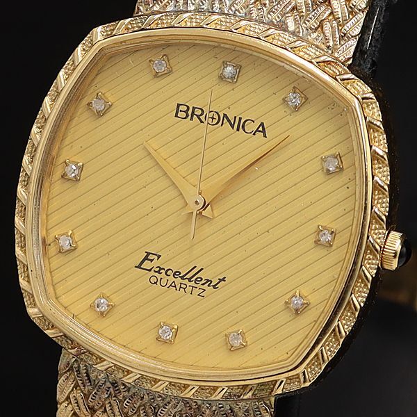 - ブロニカ エクセレント BJ-1041DX QZ ゴールド文字盤 スクエア 石付 メンズ腕時計 OSW 2000000 NSK