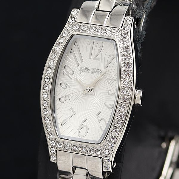 - 箱付 定価42000円 フォリフォリ QZ ダイヤベゼル スクエア シルバー文字盤 レディース腕時計 MTM 2000000