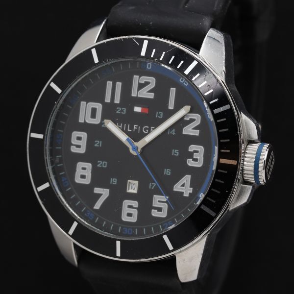 > 稼働 トミーヒルフィガー TH.153.1.1100.1619 デイト QZ ブラック文字盤 メンズ腕時計 TKD 2000000 NSK