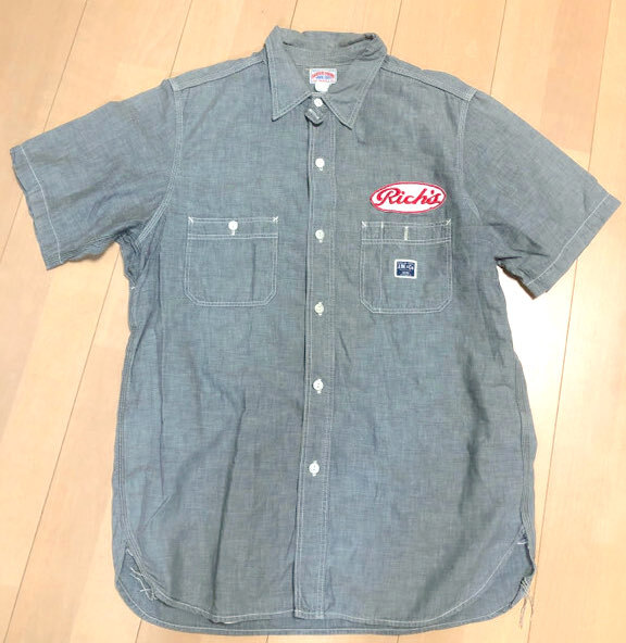 - リアルマッコイズ/グレーシャンブレー半袖シャツ/チンスト/ワッペン