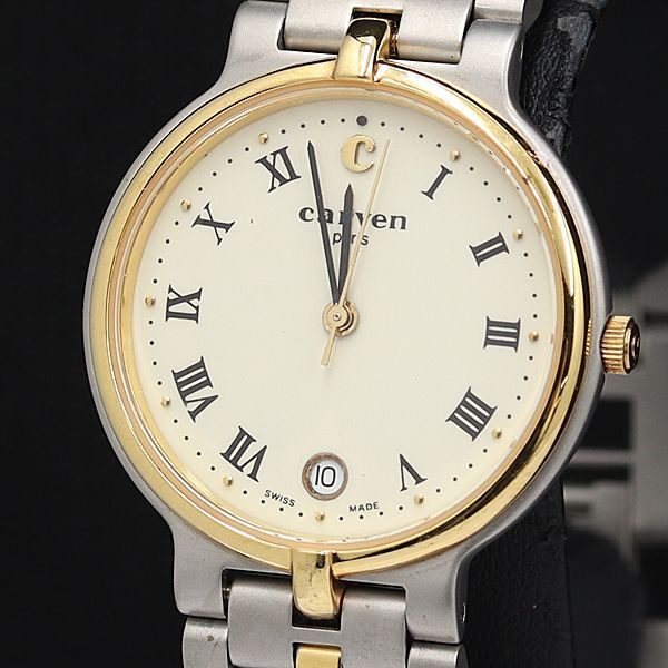 - カルヴェン 512 QZ アイボリー文字盤 デイト メンズ腕時計 OGI 2000000
