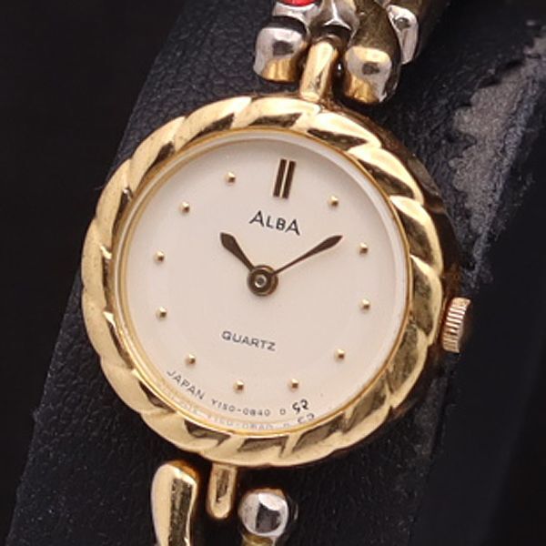 - 稼働 良品 セイコー QZ Y150-0A30 アルバ ラウンド アイボリー文字盤 レディース腕時計 YSD