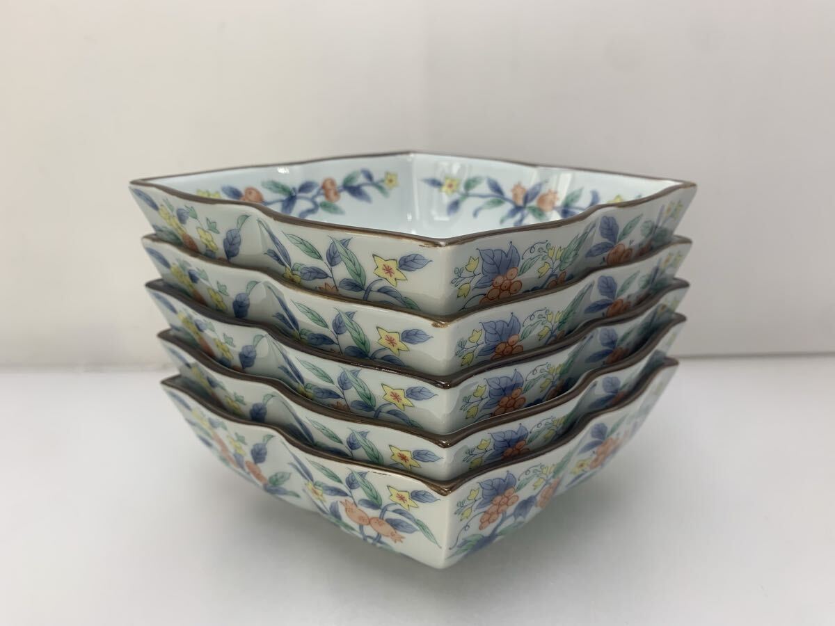 - H7-4-50913J たち吉 橘吉 角鉢 小鉢 5客 菱形 ひし形 煮物鉢 食器 和食器 小皿