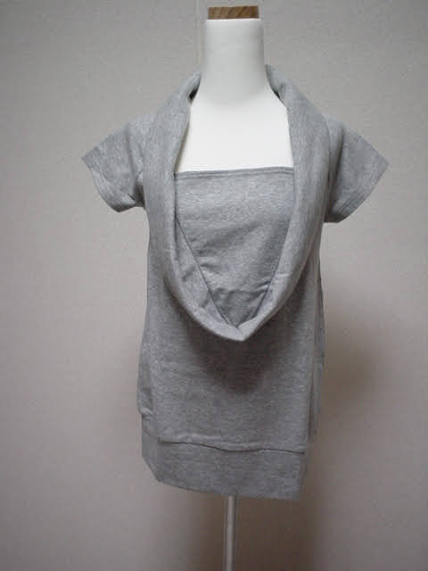 > ★即決 送料無料 新品!タグ付き★OZOC オゾック★半袖 カットソー★グレー レディース チュニック ドレープデザイン 日本製 カウルネック