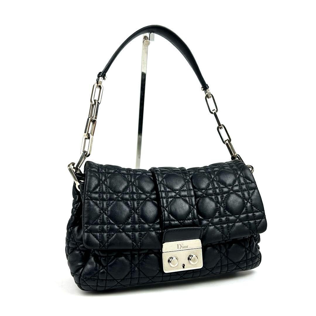 - 【美品】Christian Dior ディオール ワンショルダー 肩掛け ニューロック カナージュ キルティング ハンドバッグ ラム レザー 黒 ブラック