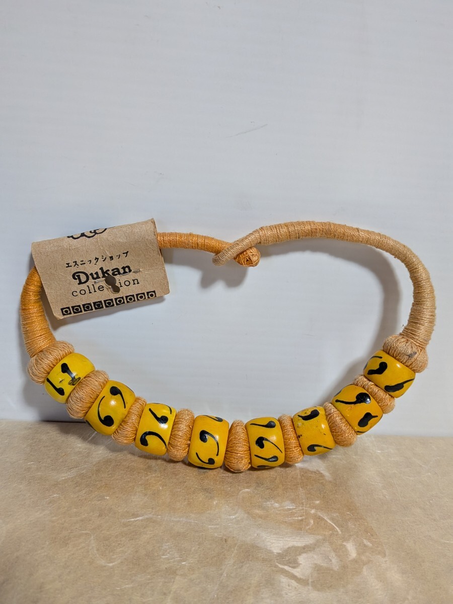 - エスニック雑貨 ネックレス オブジェ アジアンビーズ 黄色 シミあり【SH-91305】