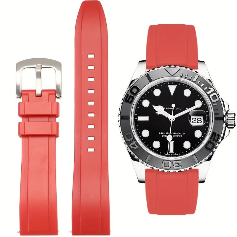 - 新品 時計用 ウォッチベルト ラバーリストバンド ソフトシリコンゴム製 バネ棒付属 カラー: レッド 取付: 幅: 20mm 管理No.42702