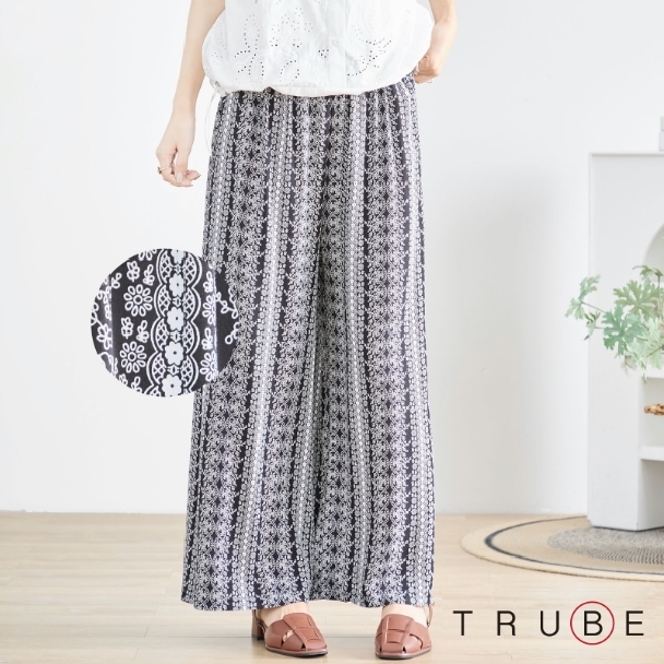 > イージーパンツ エスニック フラワー リラックス ワイドパンツ N53-039 TRUBE M L フリー 大人可愛い ミセス fmsd キレイメ 普段 デイリー