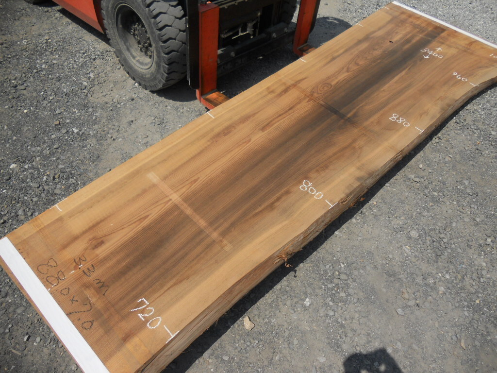 > 天竜杉 長物340cmX71~105cmX7cm 大方ム節414 長座卓 ロングテーブル材料 家具製作各種 看板 天然木 木材 耳付き 無垢一枚板 カウンター