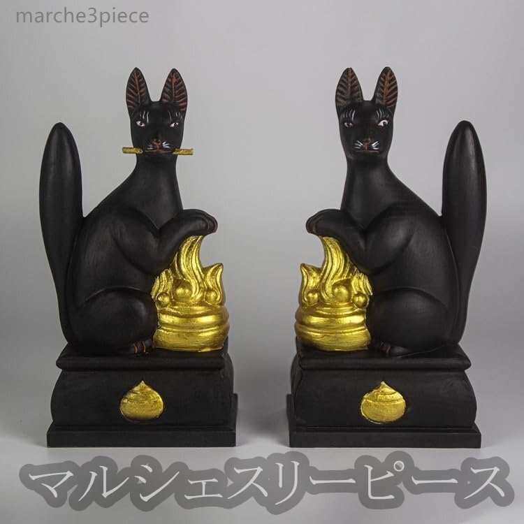 - 稲荷大明神 稲荷神 木製 一対 お狐様 神棚 お稲荷さん 高さ約14cm
