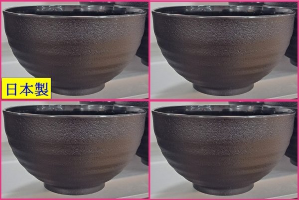 - 【送料無料:どんぶり:丼:4個:日本製】★「和波 :丼:黒系」:15cm::多用丼:和食器:レンジ食器★電子レンジ/食器洗浄機対応:No18d:2994:D
