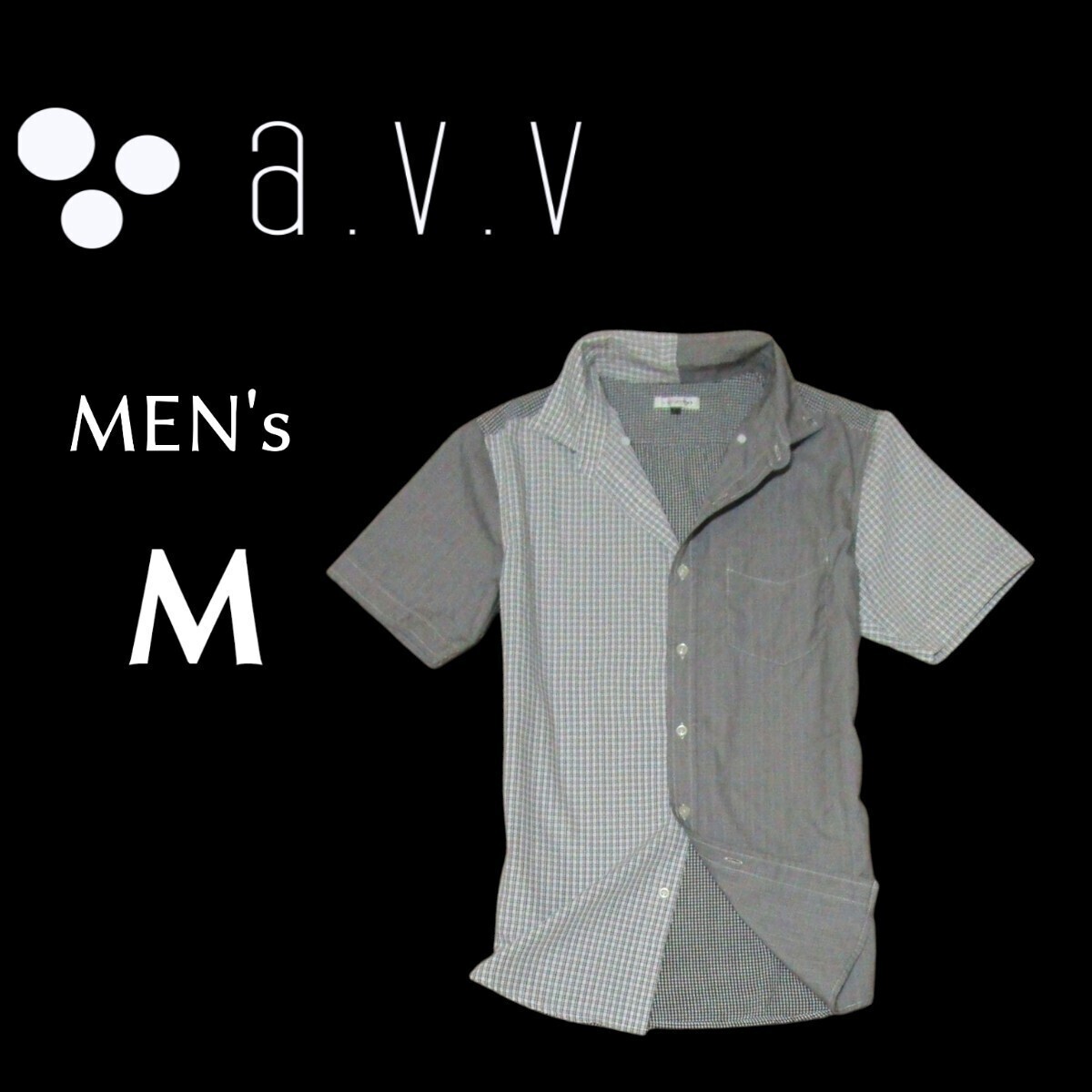 - 送料込 美品メンズMサイズa.v.v チェック柄半袖ボタンダウンシャツ