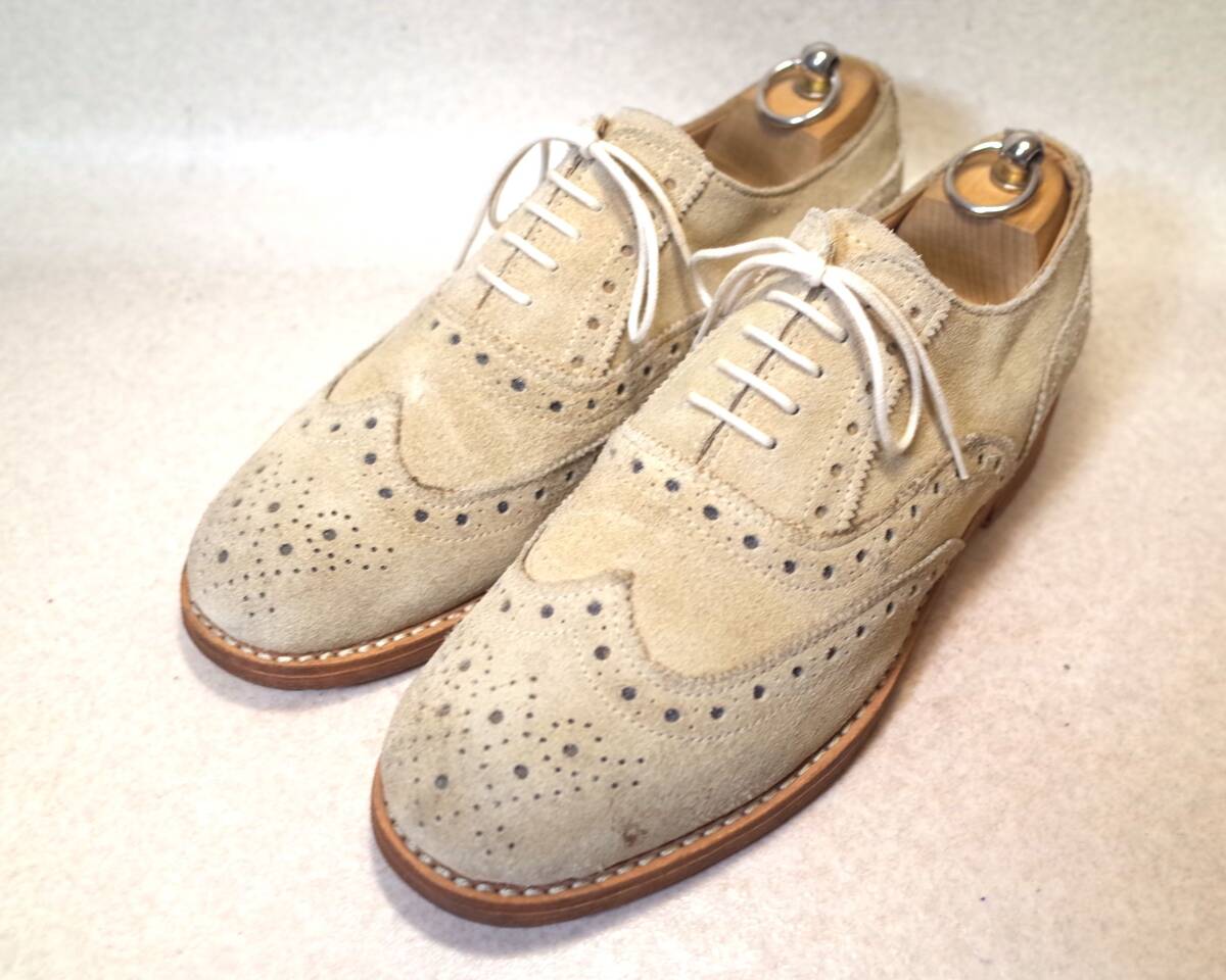 内羽根5アイレット ウイングチップ スエードレザーシューズ。