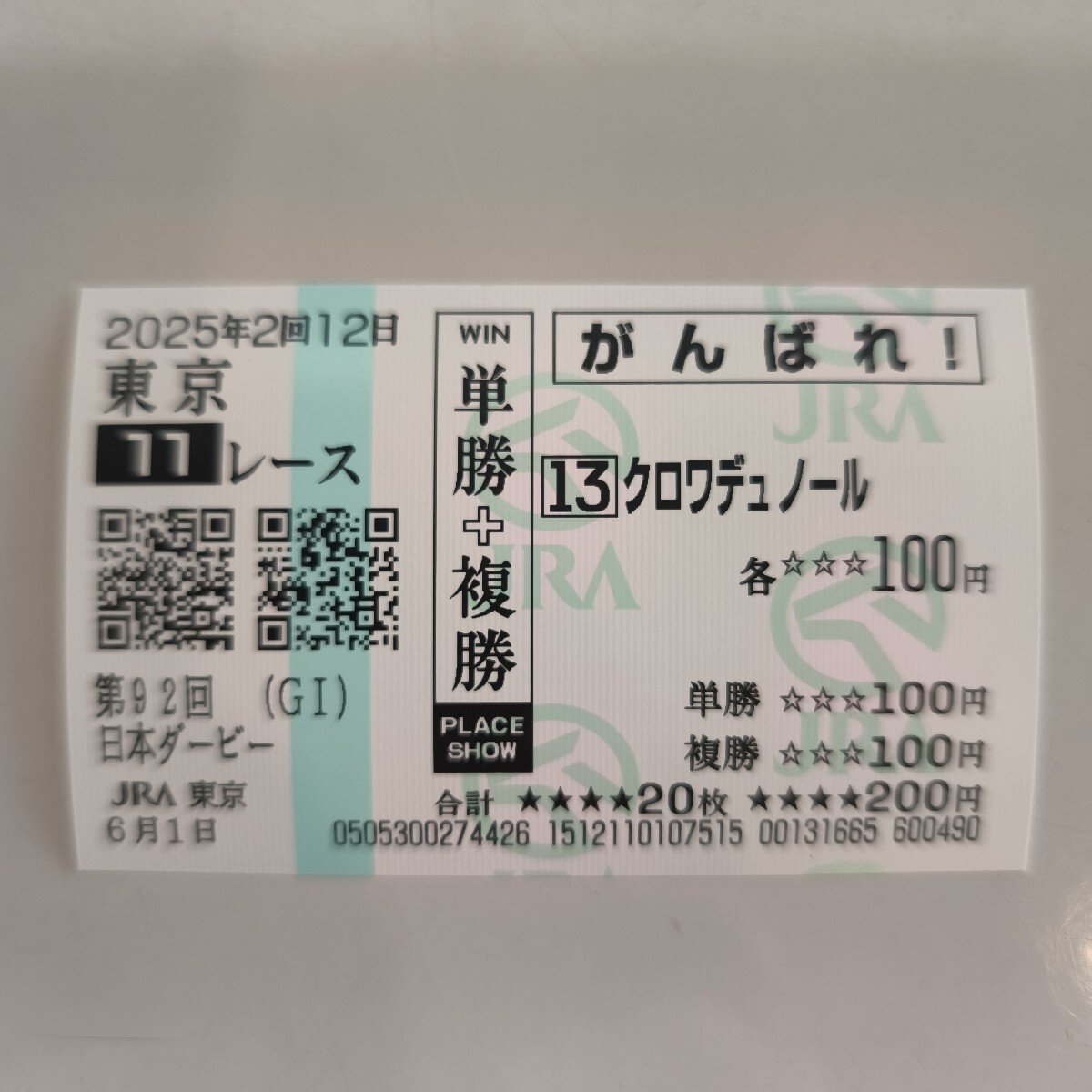 - 東京優駿 日本ダービー2025 クロワデュノール現地がんばれ馬券 匿名発送