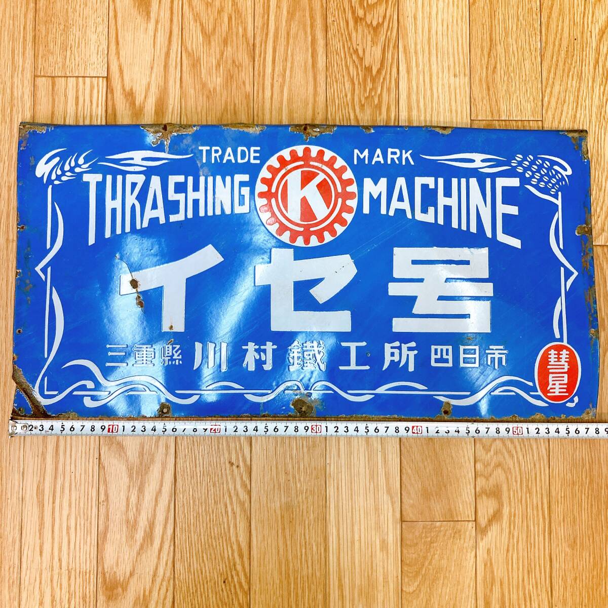 - |2541|ホーロー看板 昭和レトロ アンティーク 看板 現状品 琺瑯 三重縣川村鐵工所 イセ号 彗星 片面 四日市