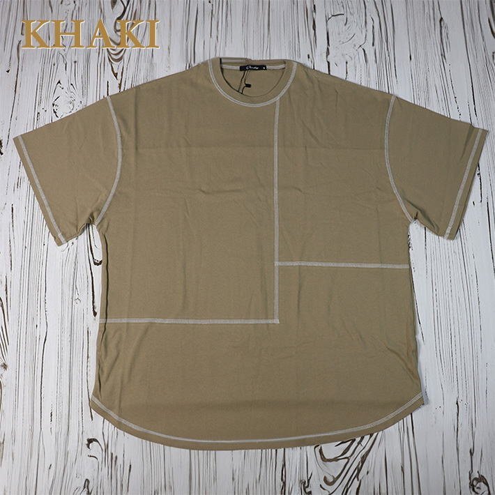 - 大きいサイズ オーバーサイズ Tシャツ 半袖 メンズ レディース ステッチ刺繍 コットン ストリート 7987983 XL 3-2_カーキ 新品