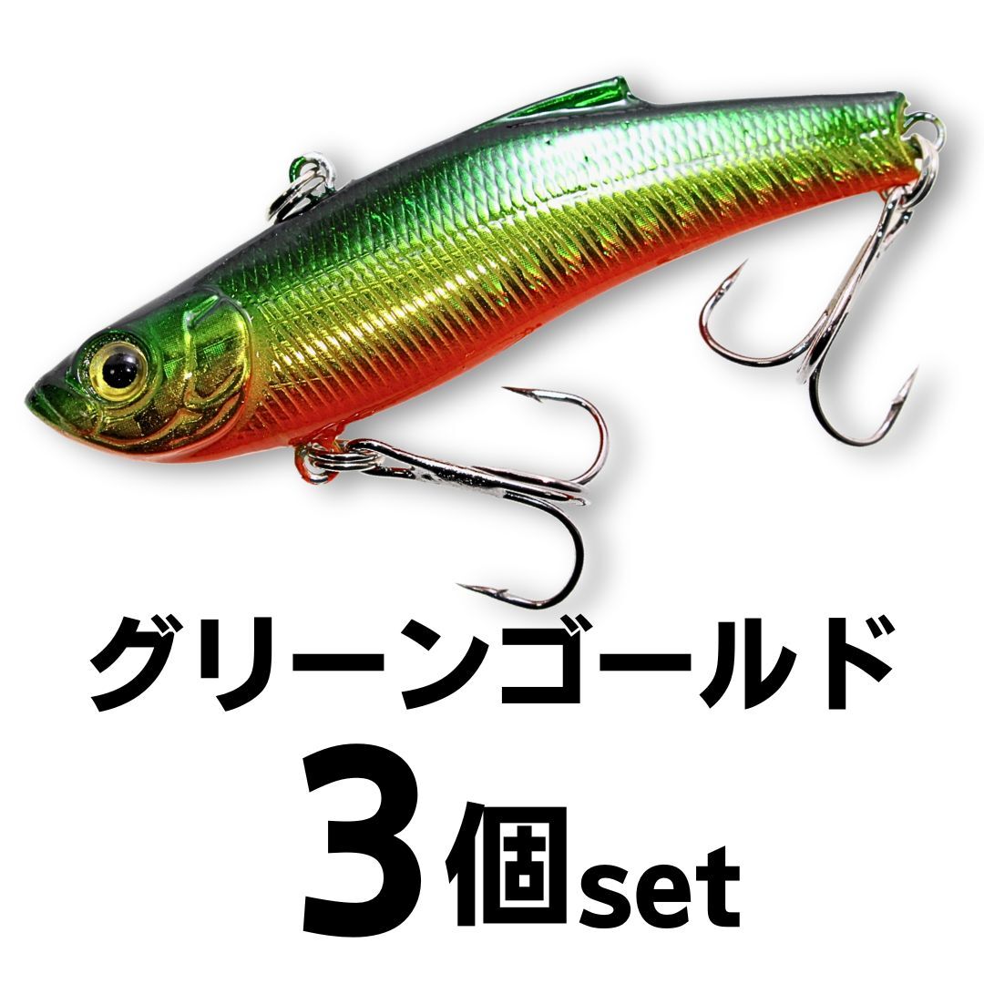 > 【送料無料】1091(イレグイ)ヘビーウェイト バイブレーション 70㎜ 18g グリーンゴールド3個セット シンキング シーバス ルアー