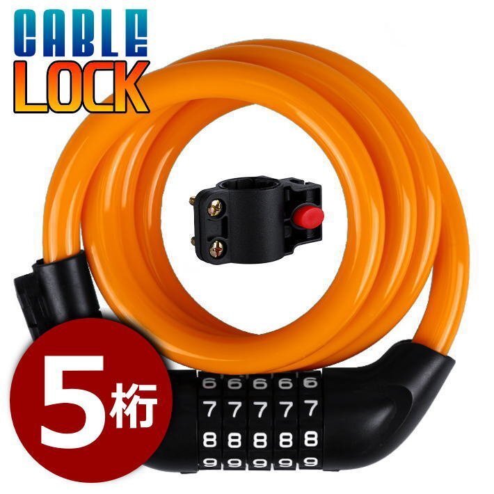 - ワイヤーロック ダイヤルロック 5桁ダイヤル 自転車 鍵 ロック ワイヤー セキュリティ 盗難防止 7986761 オレンジ 新品 1円 スタート