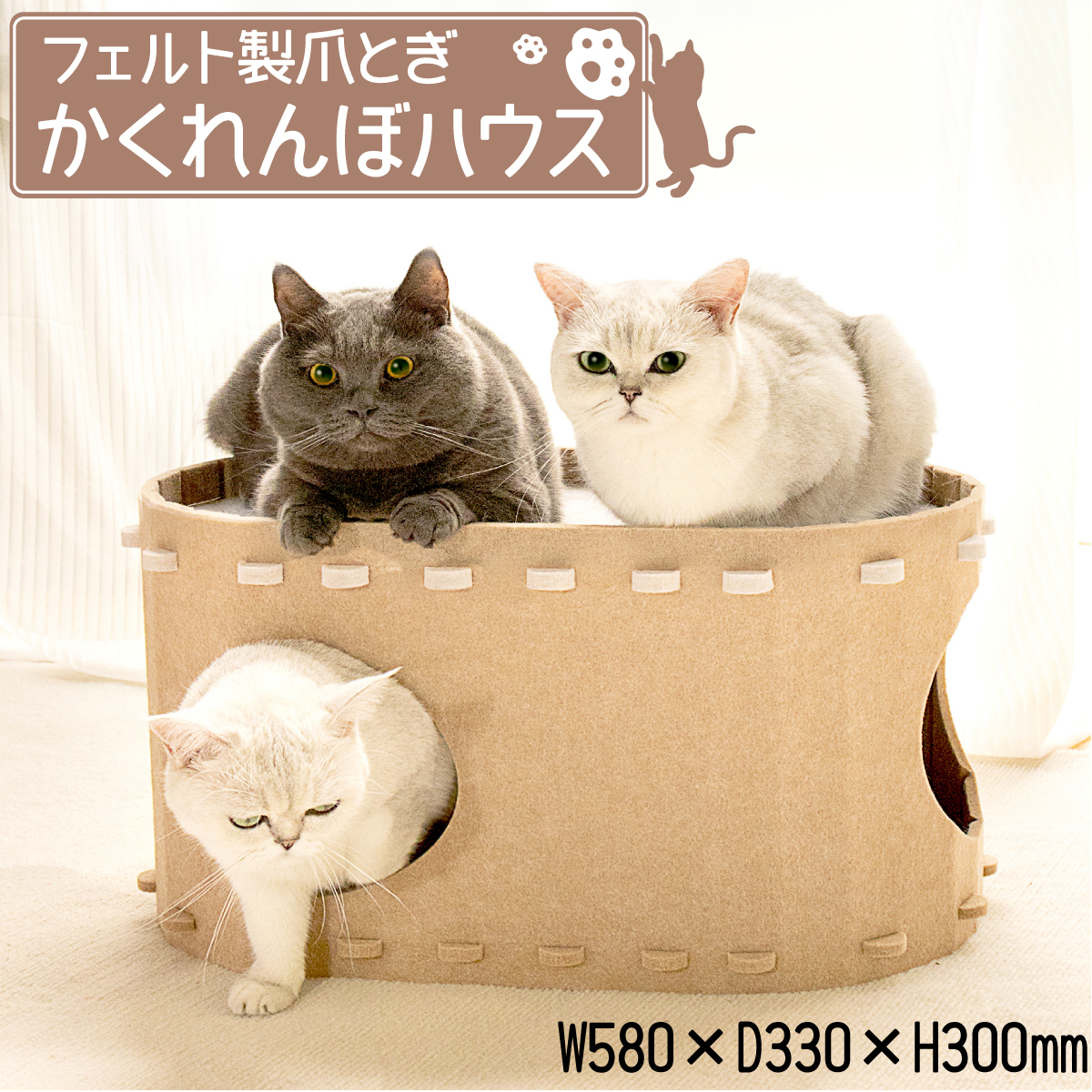 - 猫 ハウス 爪とぎ フェルト キャットハウス 組み立て簡単 取り外し可能 爪研ぎ つめとぎ ネコ ねこ 猫用品 丈夫 ペット グッズ トンネル
