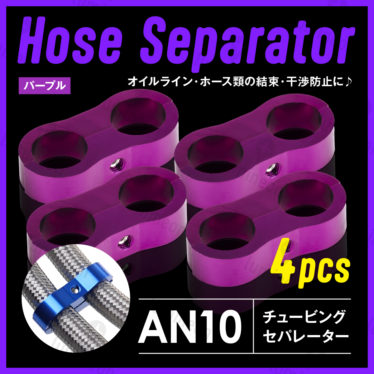 - ホース セパレーター チュービング クランプ 4個 セット フィッティング アダプター バイク 二輪 車用 AN10 配線 固定 パープル g231e4 1