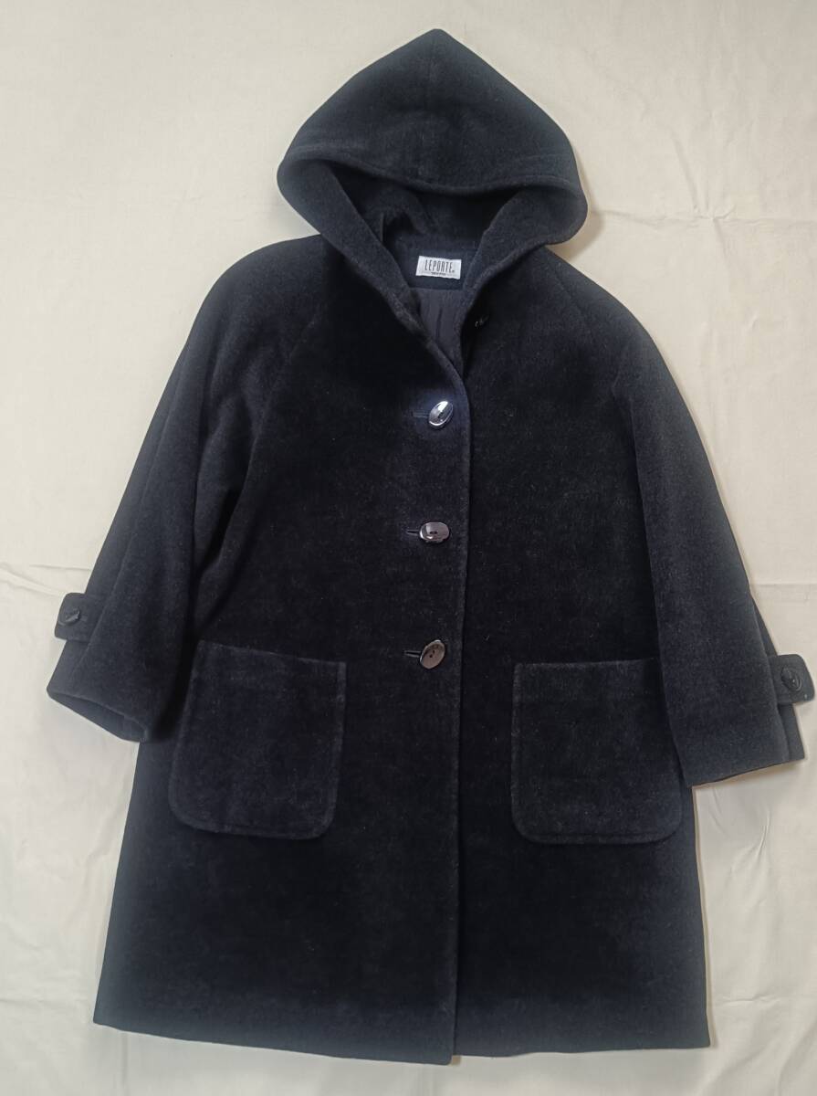 - 宅急便送料込み アンゴラ LEPORTE レポルテ 東京スタイル コート ウール やわらかい手触り レディース9 M チャコール フーディ 7934