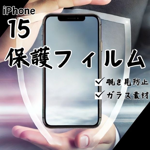 - ガラスフィルム 画面フィルム iPhone15 覗き見防止