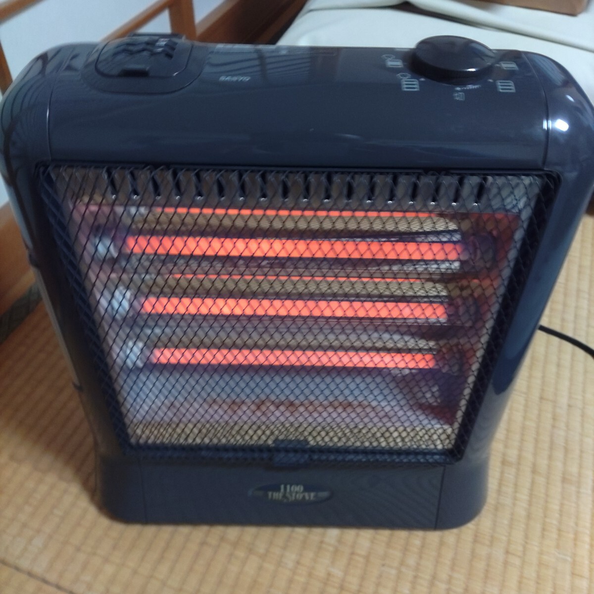 - 電気ストーブ 3段階に温度調節可能、スチーム機能付きなので温めながら加湿も出来るタイプ、転倒防止機能付きで地震などが起きても安心