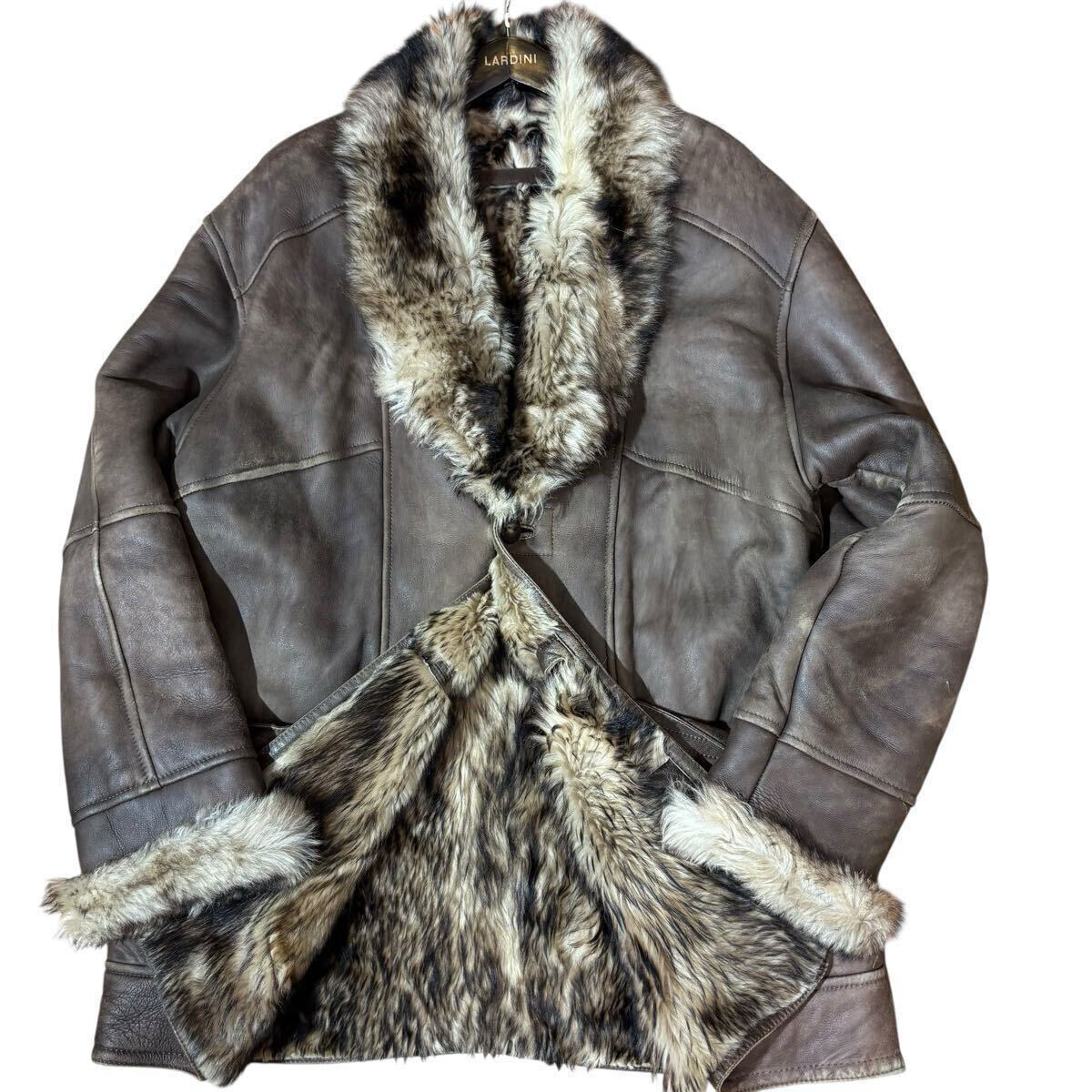 > 『名もなき実力派ムートン』極上ミックス毛皮!!!吸い付く手触り◎最高級ムートンコート ジャケット XL相当 ダークブラウン 肉厚 ラムスキン