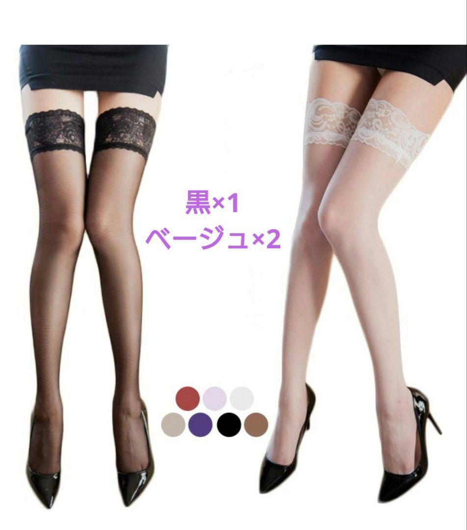 - 【新品】黒 ベージュ×2 シアーストッキング コスプレ ニーハイ 3足セット