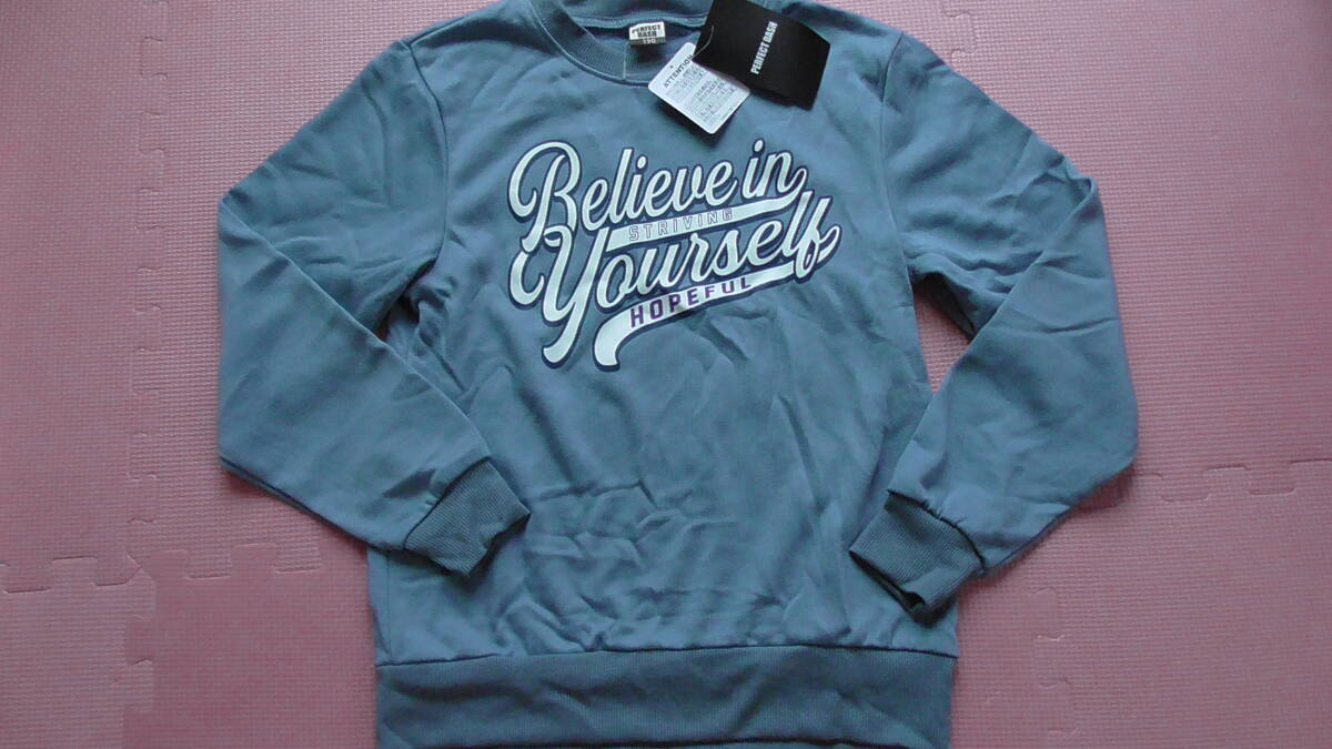 > 新品 150 長袖トレーナー 青 野球ユニフォーム風 英字ロゴプリント かっこいい 筆記体 裏毛 双子 兄弟 小学生 男の子 秋物 140〜 送料無料