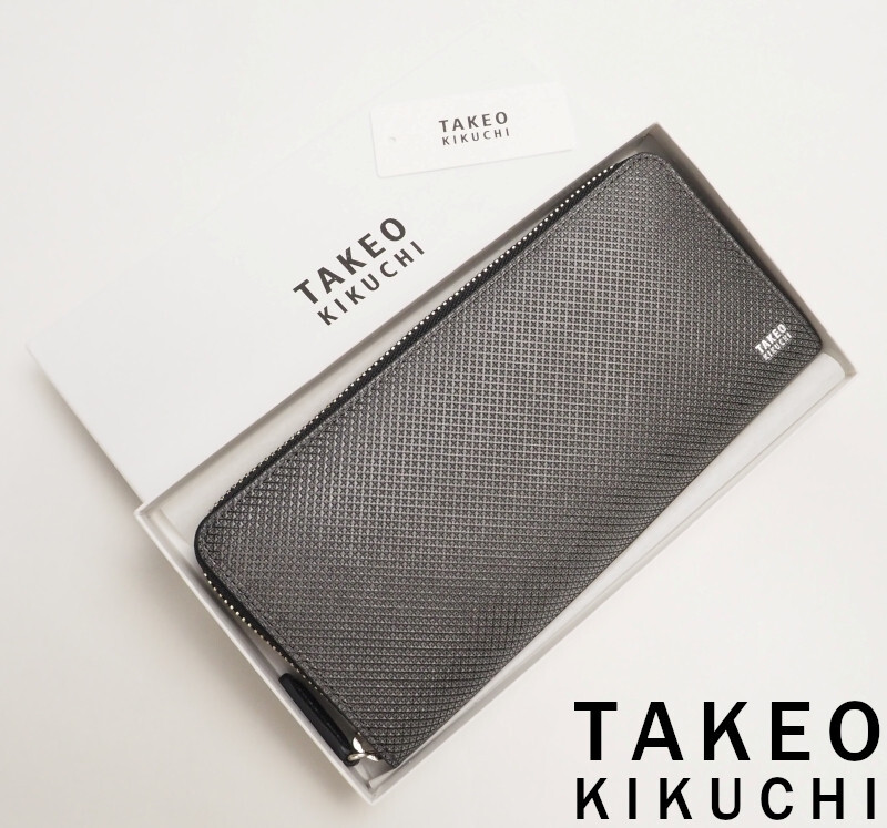- 新品正規1.9万円 TAKEO KIKUCHI タケオキクチ バース 牛革 レザー ラウンドファスナー 長財布 グレー(GRY) 706626