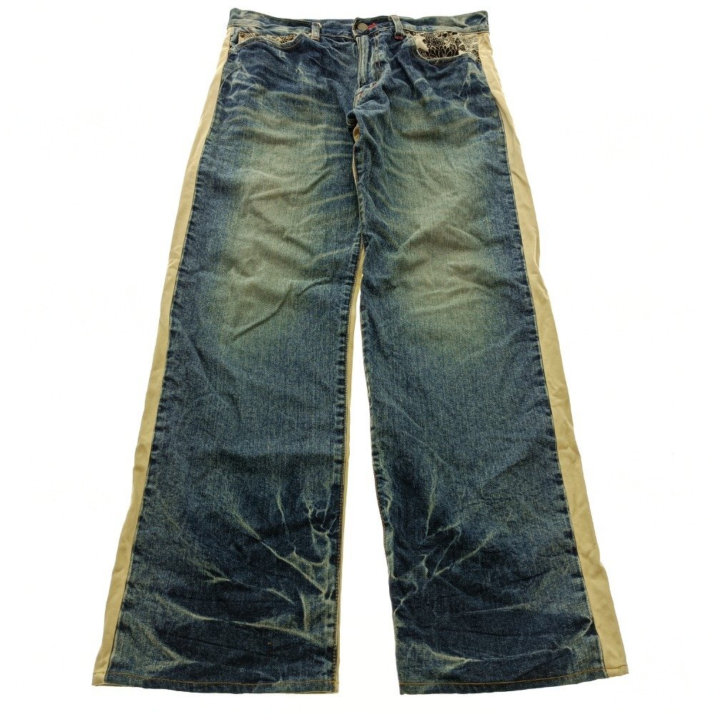 - Kura 備中倉敷工房 倉 和柄ジーンズ ETERNAL エターナル ツートン 花 サイズ34 MADE IN JAPAN JEANS カジュアルファッション 中古