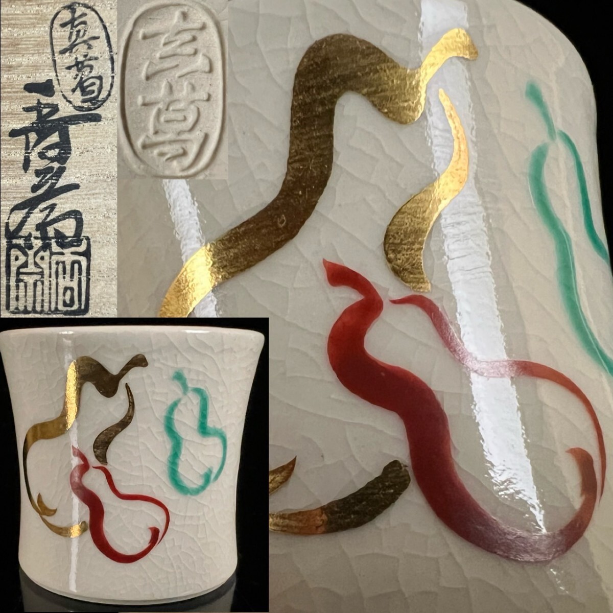 - 古美術品 真葛香斎「玉ひょう 蓋置」瓢箪尽色絵蓋置 5.5cm 共箱 茶道具 宮川香斎 京焼 真葛焼 時代物 唐物骨董[麌]