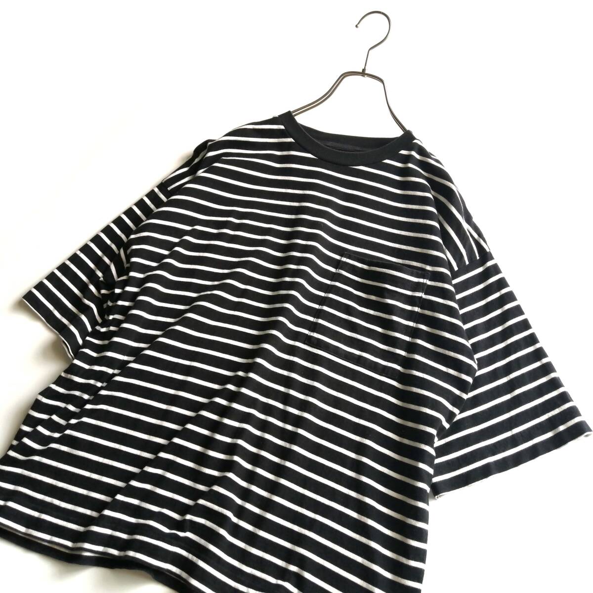 > MUJI 無印良品 ボーダーtシャツ ポケット付き サイズS-M ブラック 25-0915fu02【4点同梱で送料無料】