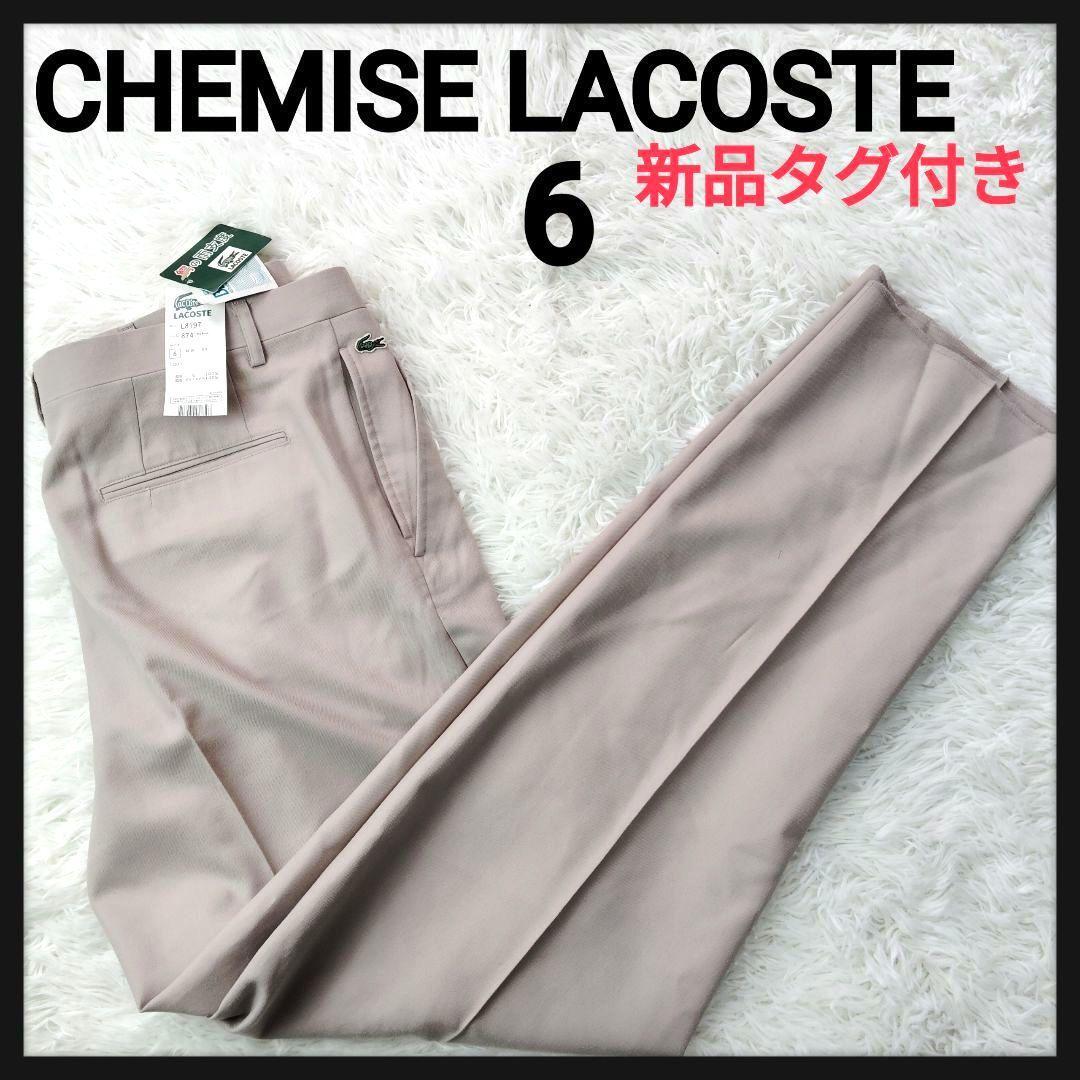 - 【奇跡のデッドストック】シュミーズラコステ 文字ワニ刺2タックワイドスラックス 希少80s 6サイズ ベージュ 新品タグ付き 未使用