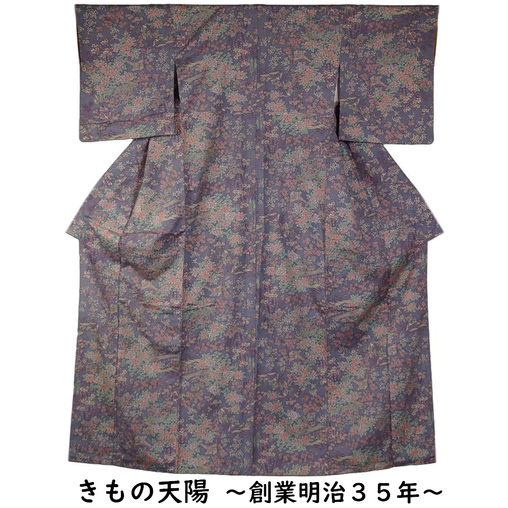 > 紬 茶屋辻模様 Sサイズ 藤鼠色系 中古 リサイクル着物 正絹 京都きもの天陽