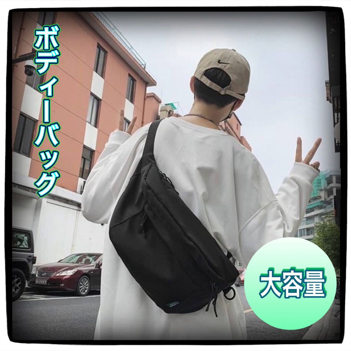 - ボディバッグ ブラック ユニセックス 大容量 軽量 斜めがけ ワンショルダー シンプル 男女兼用 大きめ