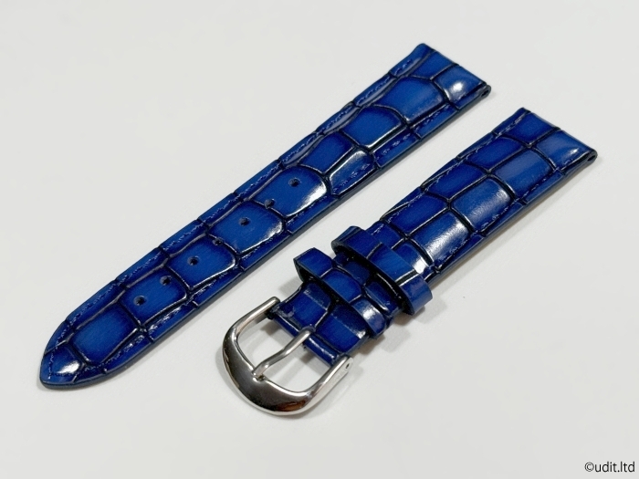 - ラグ幅20mm クロコダイル型押し 腕時計レザーベルト ブルー シルバー尾錠 時計用バンド LB102