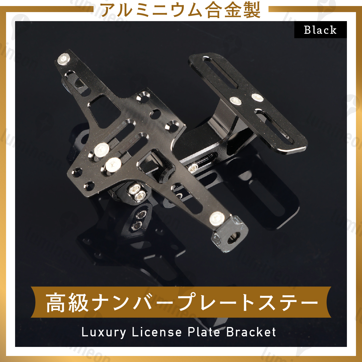 > 高級 ナンバー ステー ナンバープレート バイク ブラック 黒 折り曲げ 角度調整 角度調節 上げ ナンバー 隠し パタパタ 汎用 g006aa 2