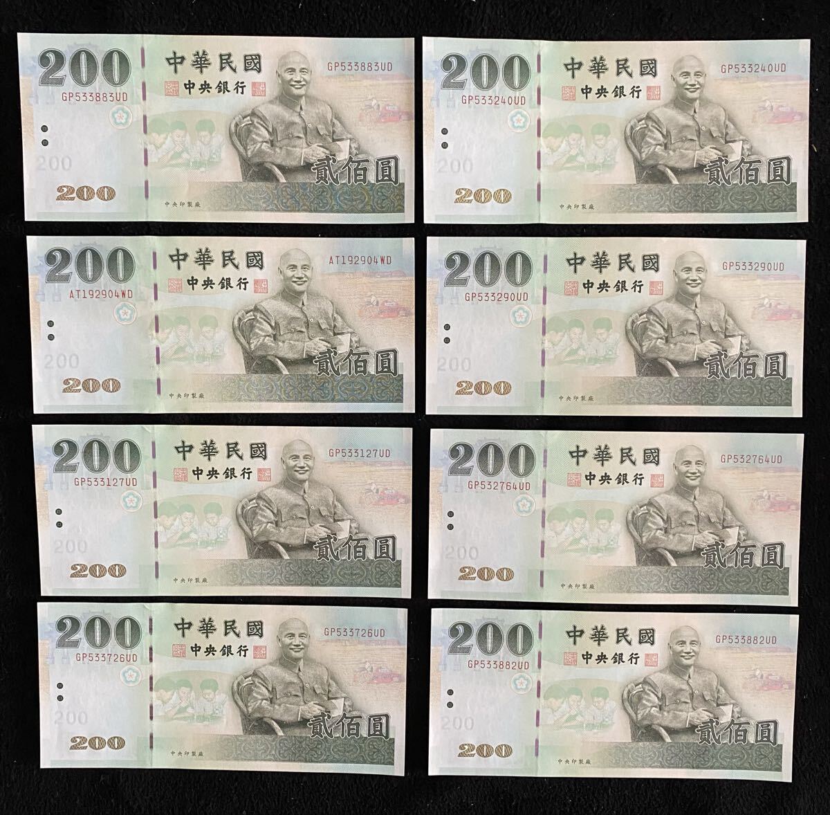 - 4、台湾 紙幣 200 TWD x 8枚 セット (合計1600TWD)