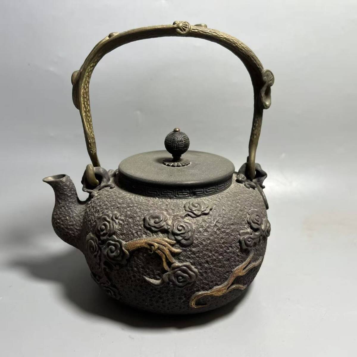 - 旧家蔵出し 鉄製 鉄瓶 飛龍祥雲紋 急須 茶道具 提梁瓶 提壺 茶道品 極細工 置物擺件 美術品 旧家蔵出 旧家供養品