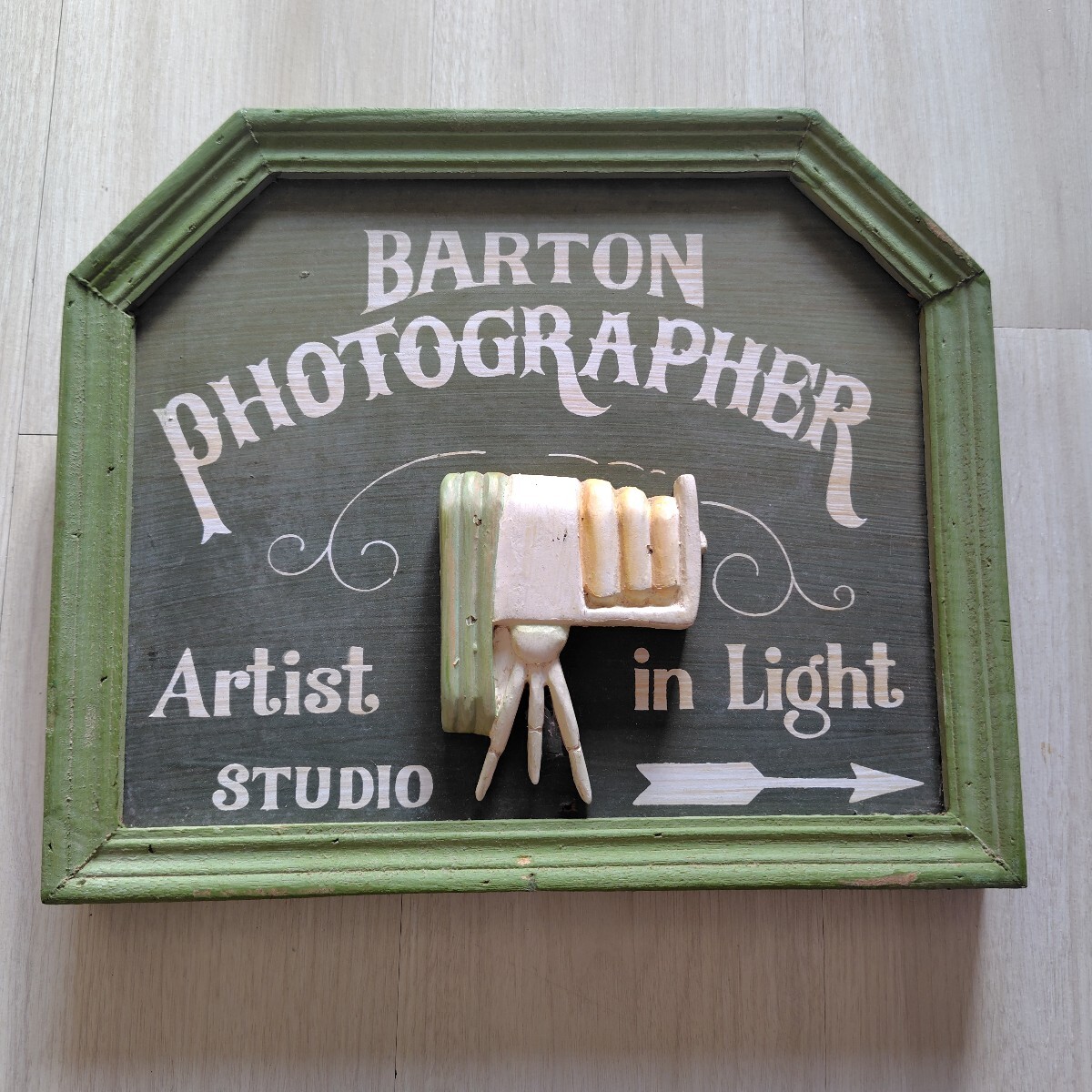 > ヴィンテージ80s90s バートン・フォトグラファー BARTON PHOTOGRAPHER 木製 看板 33cmx17.8cm 壁掛け