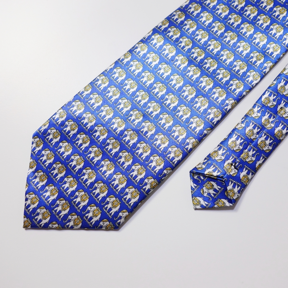 - 美品 THE FIRST 象柄シルクネクタイ メンズ アニマル柄 総柄 ビジネス パーティー タイ製 ブルー LQ67