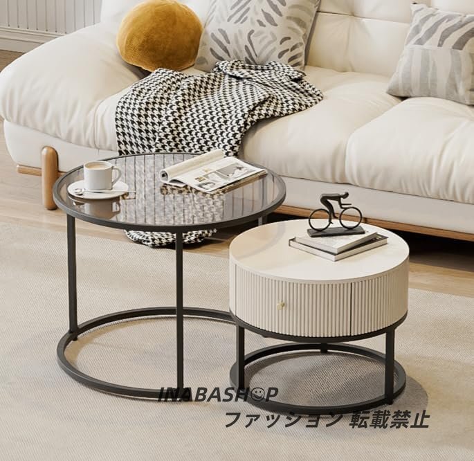 - リビングテーブル サイドテーブル 収納 テーブル 円卓テーブル組立簡単機能小さなテーブルカフェテーブル省可動