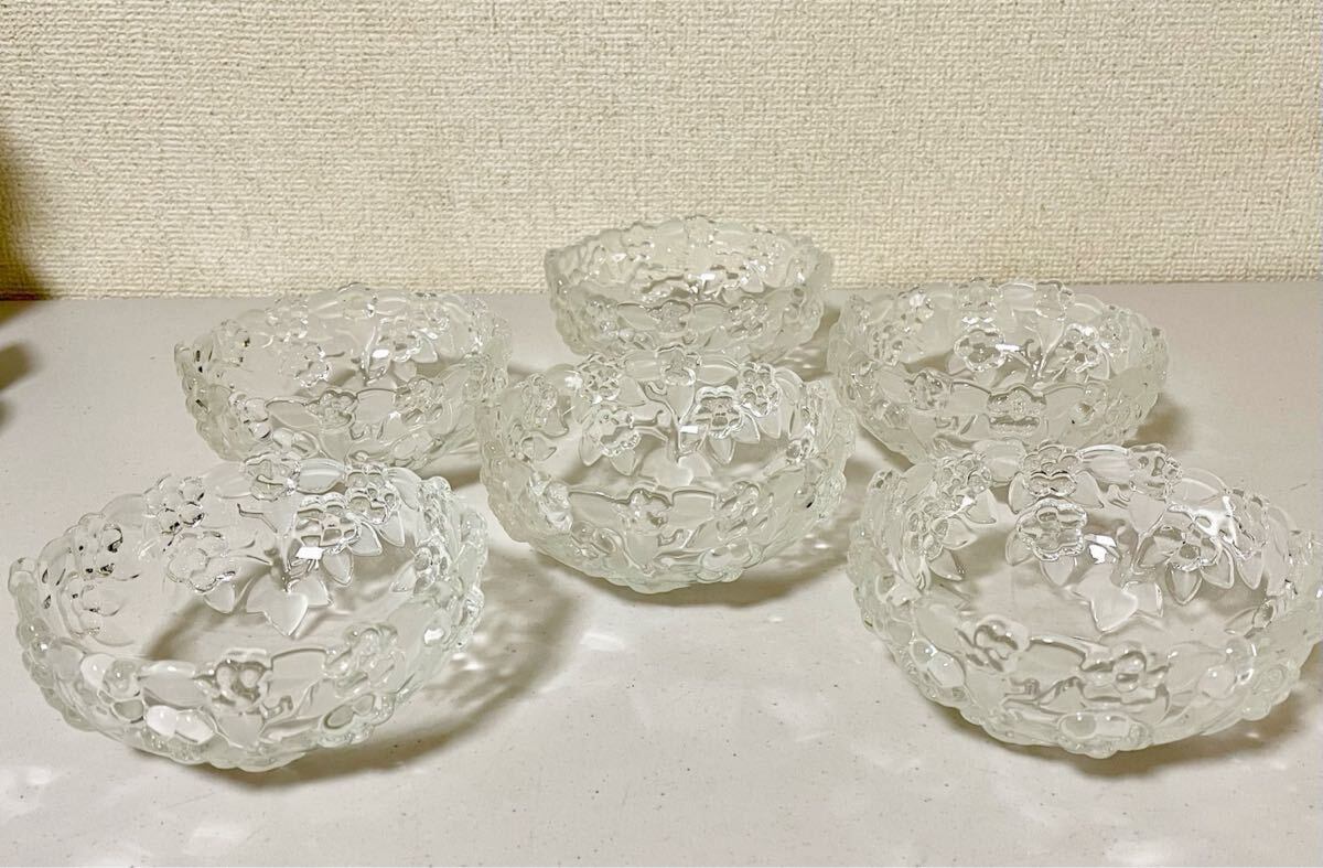 - アンティーク クリスタル CRYSTAL デザート皿 6客セット ガラス小鉢 ガラスボウル 直径約13㎝ 高さ約6㎝ 14ー9
