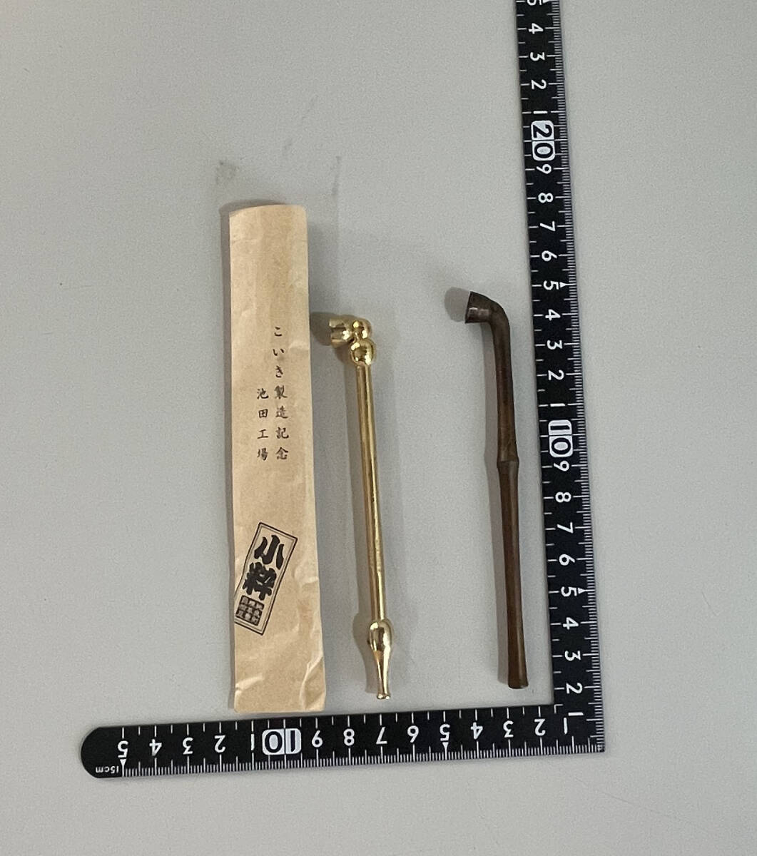 - 【小粋・こいき製造記念/池田工場】真鍮製キセル 2本セット(金色/竹風仕上げ)煙管 レトロ喫煙具