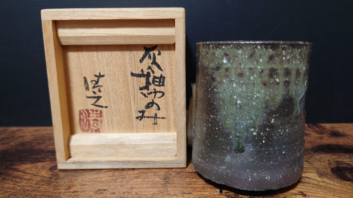 - 瀬戸の巨匠【加藤清之】灰釉 ゆのみ 共箱 湯呑 茶器 現代陶芸 収集家放出品