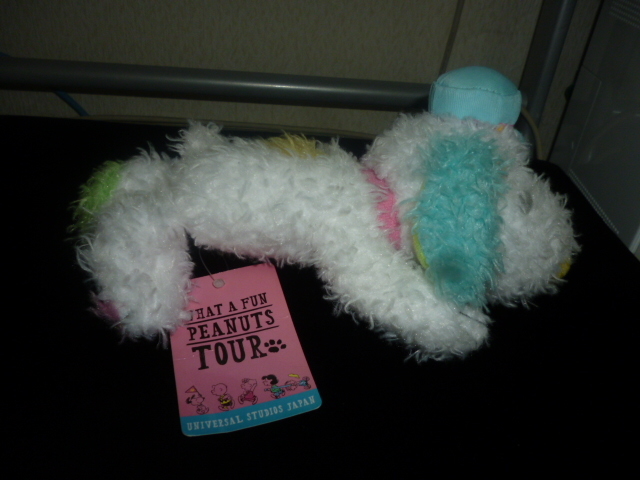 > USJ タグ付き WHAT A FUN PEANUTS TOUR スヌーピー ぬいぐるみ 淡い色 ユニバーサルスタジオジャパン