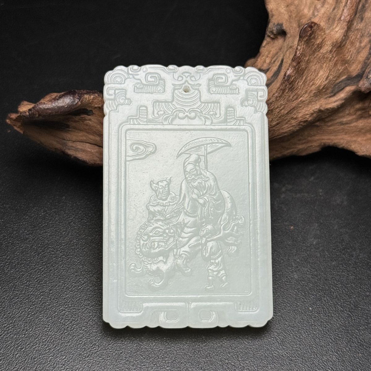> 永し 清時代 和田玉 子岡牌 太師上朝 玉牌彫り件 極細工 裝身具 根付 置物擺件 古美術品 時代物 古董品 収集 古美味 旧家蔵出 中国唐物 37g