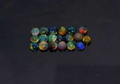 - 5.5mm 0.46ct ブラックファイヤー オパール カボション ルース 1個 ジュエリー ハンドメイド エチオピア ピアス